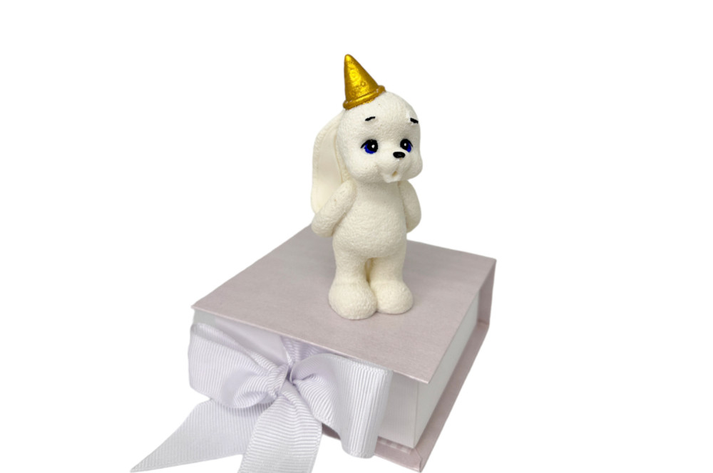 Tento čokoládový zajačik vyžaruje šarm a jemnosť a jasne zdôrazňuje jedinečný charakter oslavy. Zdobenie torty je jednoduché! Odporúčame umiestniť figúrku na akúkoľvek tortu bez ohľadu na jej veľkosť, tvar alebo farbu. To však nemení nič na tom, že naše výrobky budú na týchto malých alebo stredne veľkých tortičkách vyzerať skvele. Vylepšia každú tortu, aj tú najobyčajnejšiu, jednofarebnú. Jednoducho umiestnite a vaša krásna torta je hotová!